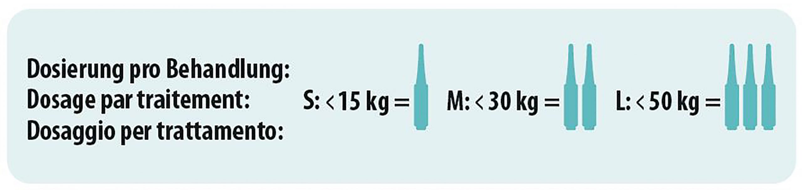 Osservare le informazioni sul dosaggio per peso corporeo. Tagliare la punta della pipetta con le forbici, dividere il pelo e applicare l’intero contenuto della pipetta alla base del collo direttamente sulla pelle. Ripetere il trattamento ogni 4 settimane. In caso di infestazione da parassiti, ripetere l’applicazione ogni 7 giorni e dopo il bagno.